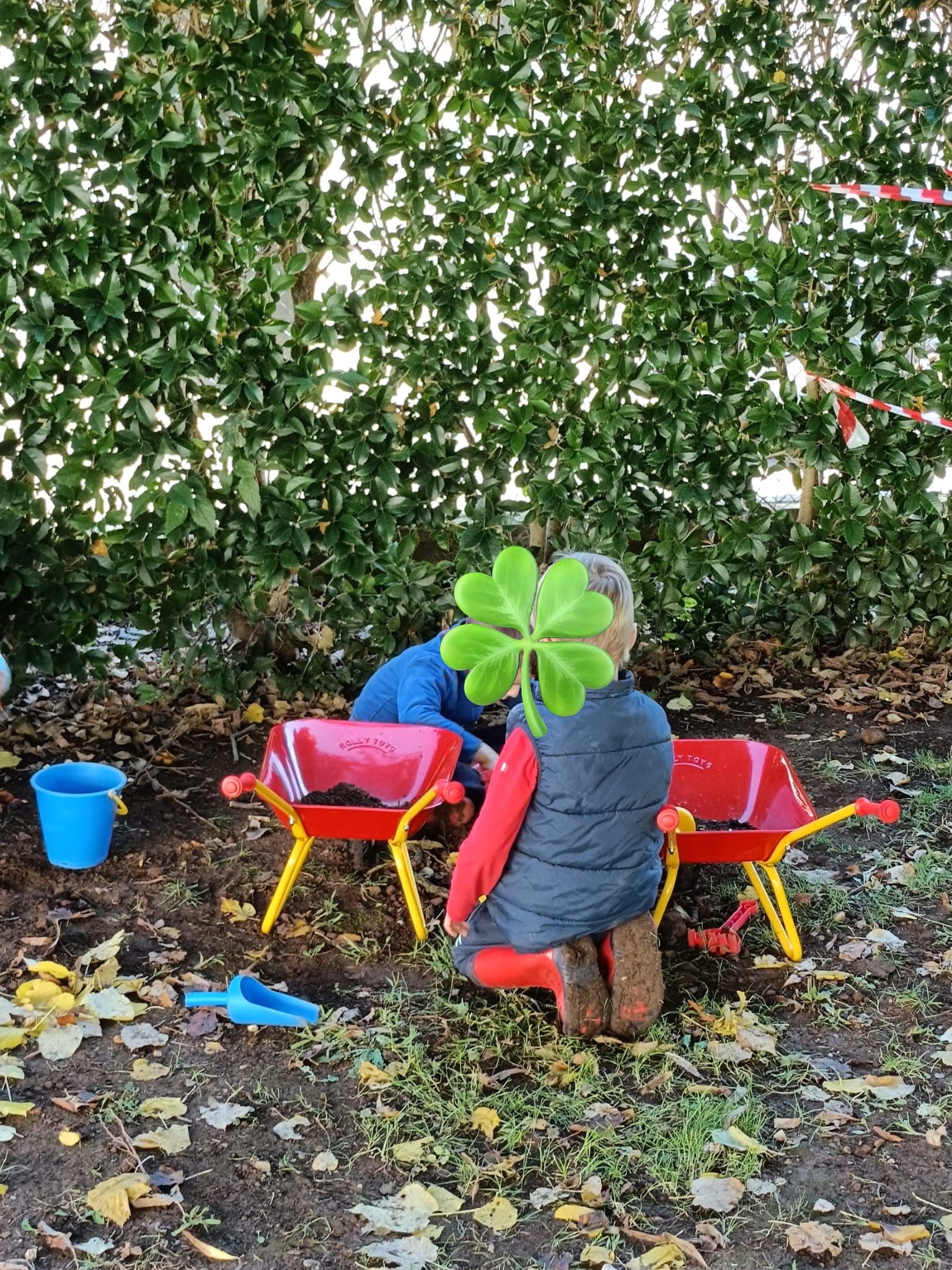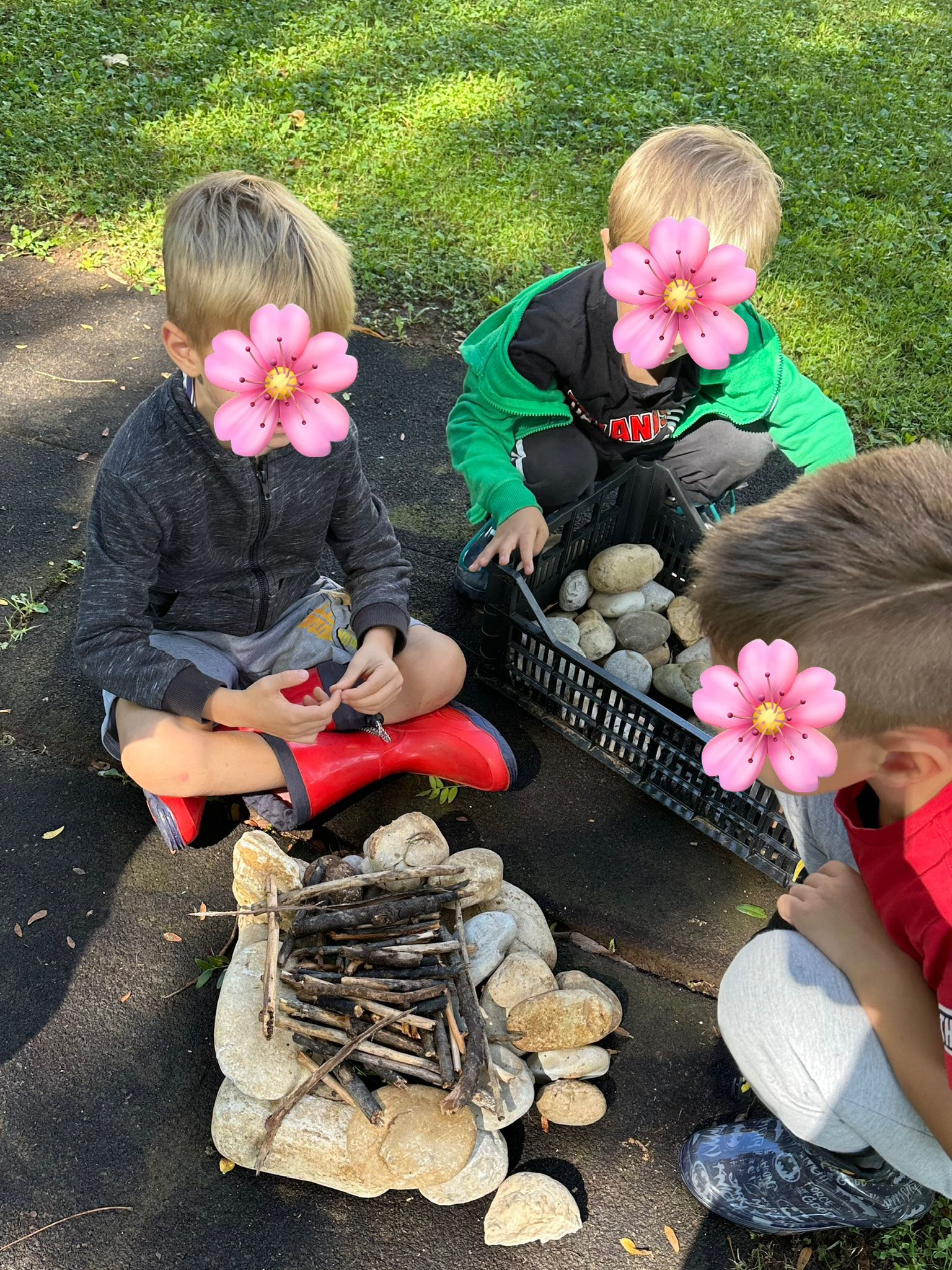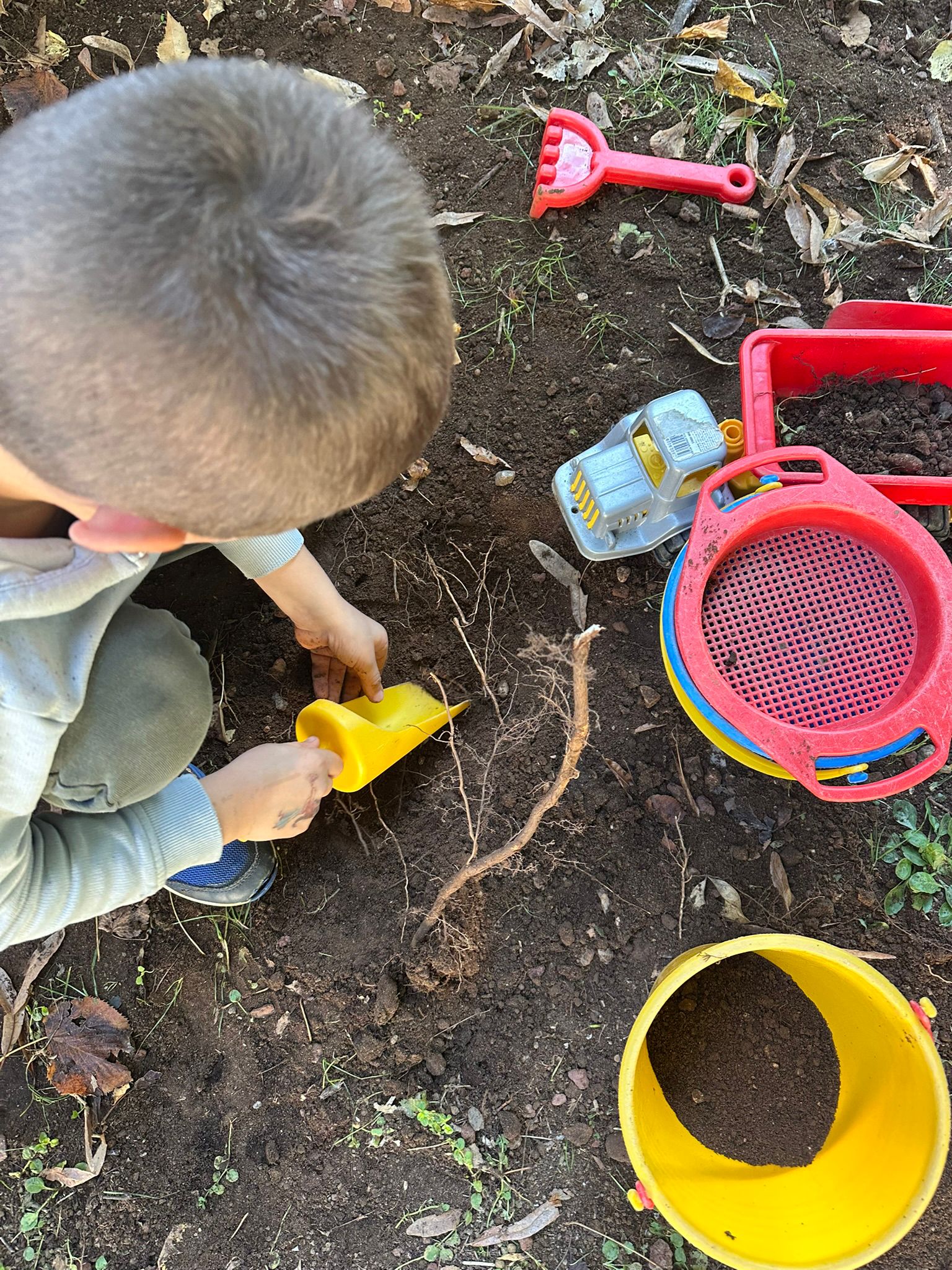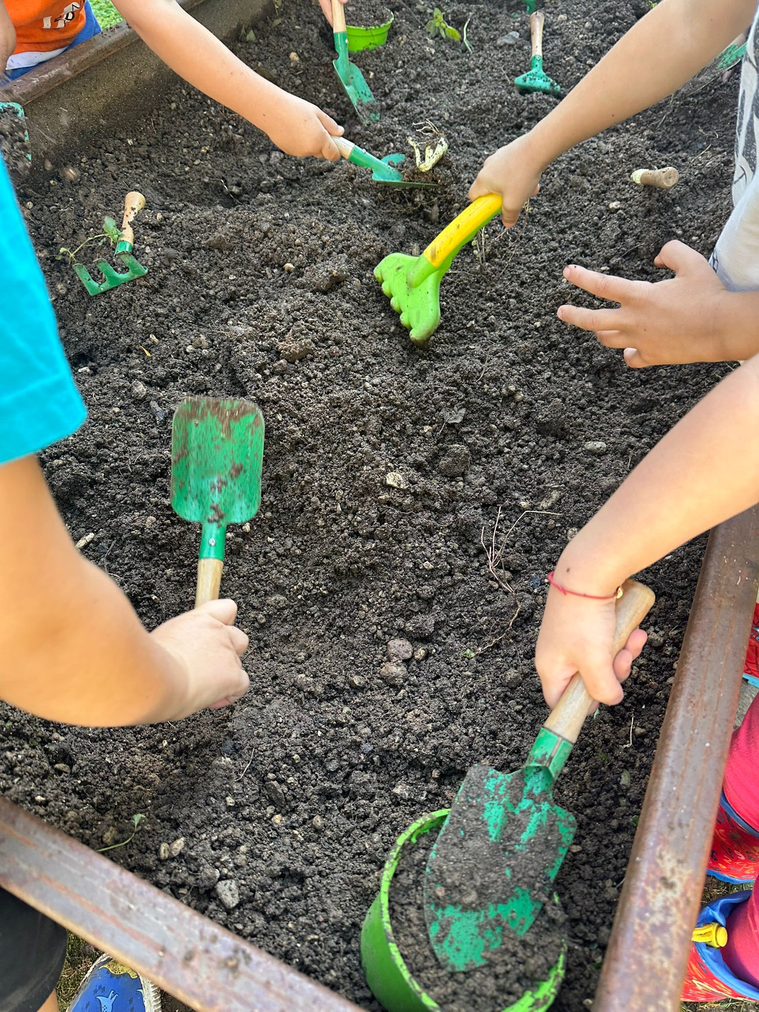 Nell’orto, nel piccolo cantiere e nello spazio per costruire con sassi e legnetti, i bambini sperimentano, imparano insieme, scoprendo la bellezza della collaborazione.