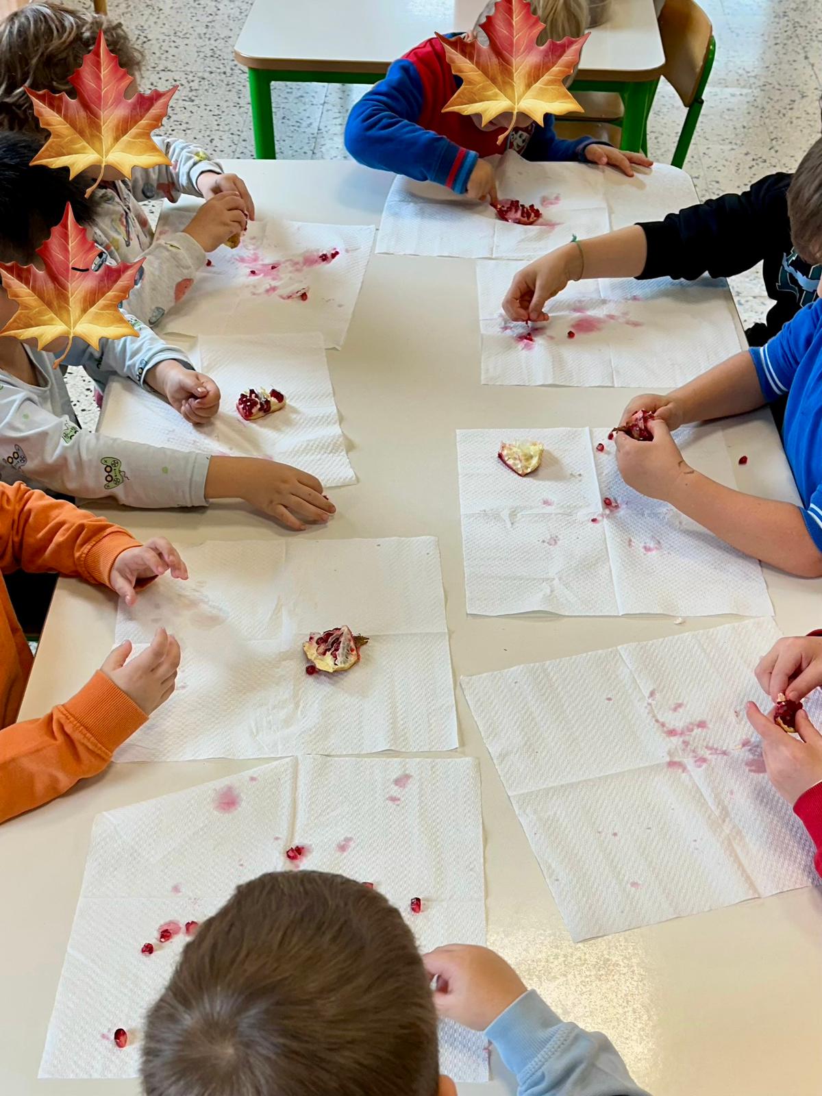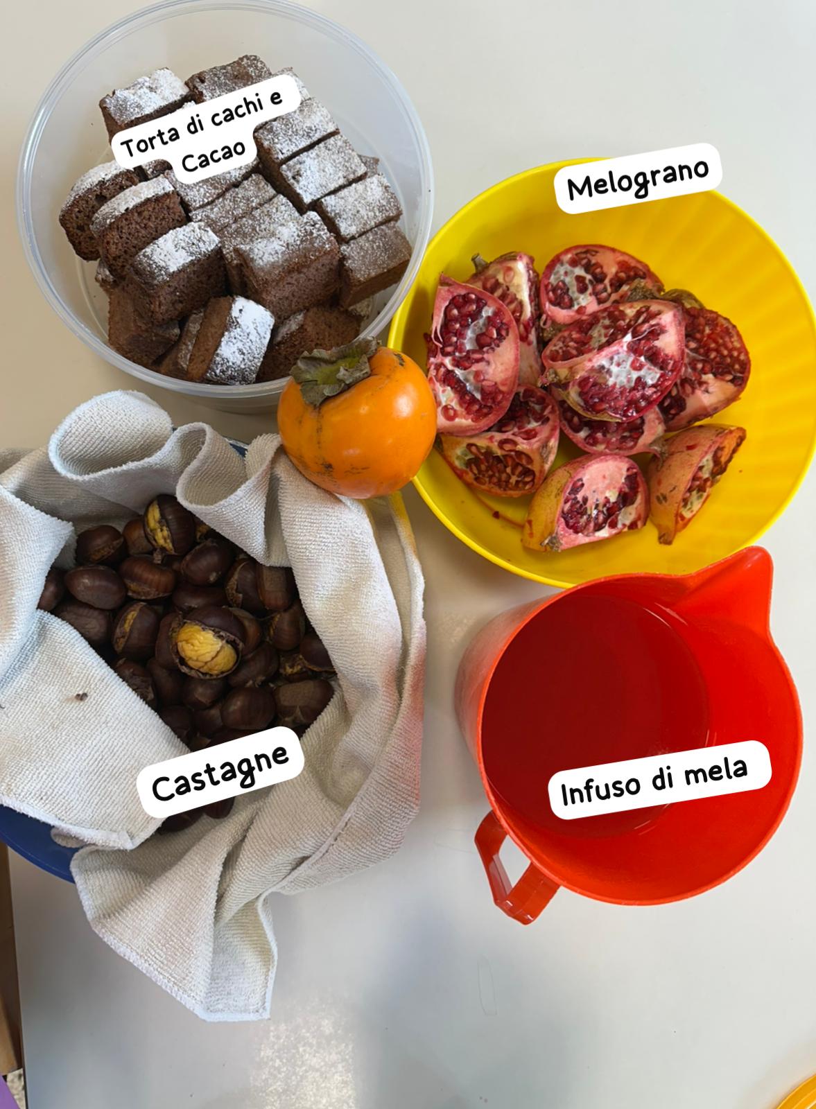 Abbiamo assaggiato la torta, il melograno, le castagne e sorseggiato un buonissimo infuso… tutti sapori che profumano d’autunno e che abbiamo imparato a conoscere in questo ultimo mese.