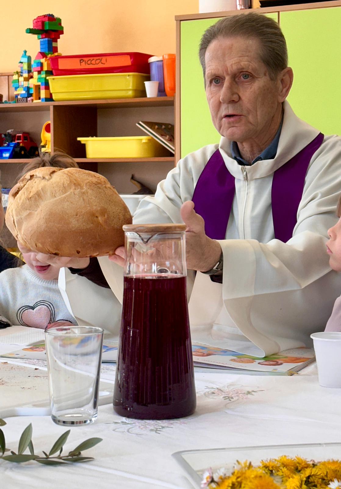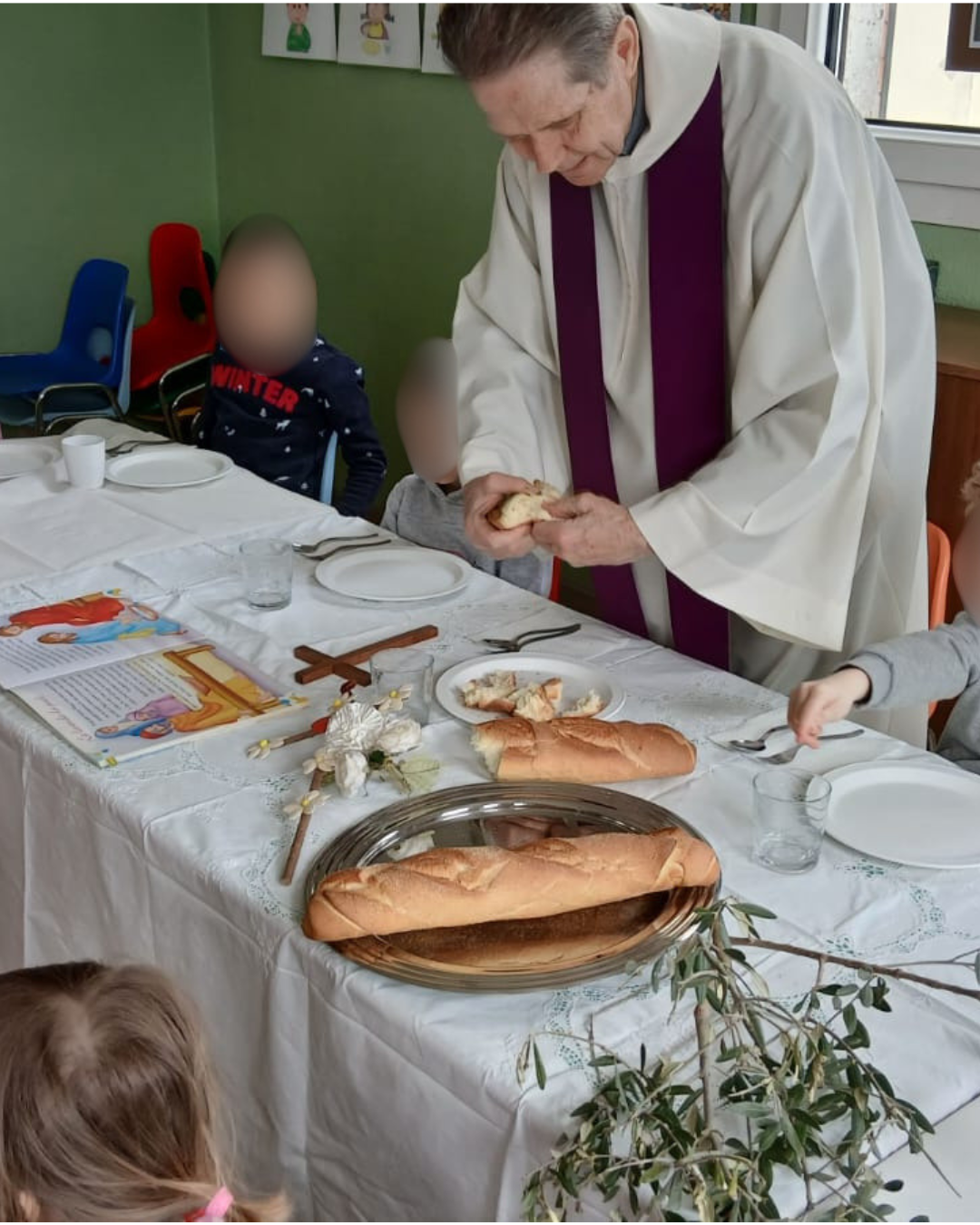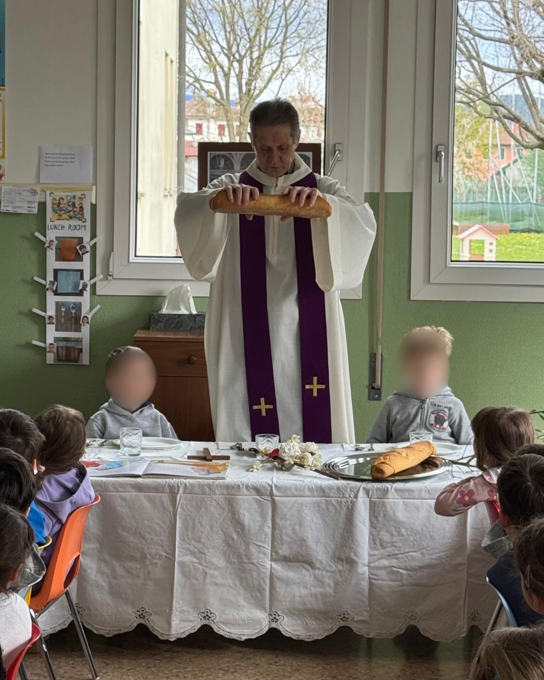 In ognuna delle tre scuole, spezzando il pane, proprio come fece Gesù circondato dai suoi apostoli, Don Luciano si è posto al centro, circondato a sua volta dai bambini, attenti e coinvolti, pronti a seguire ogni suo gesto con grande partecipazione.
